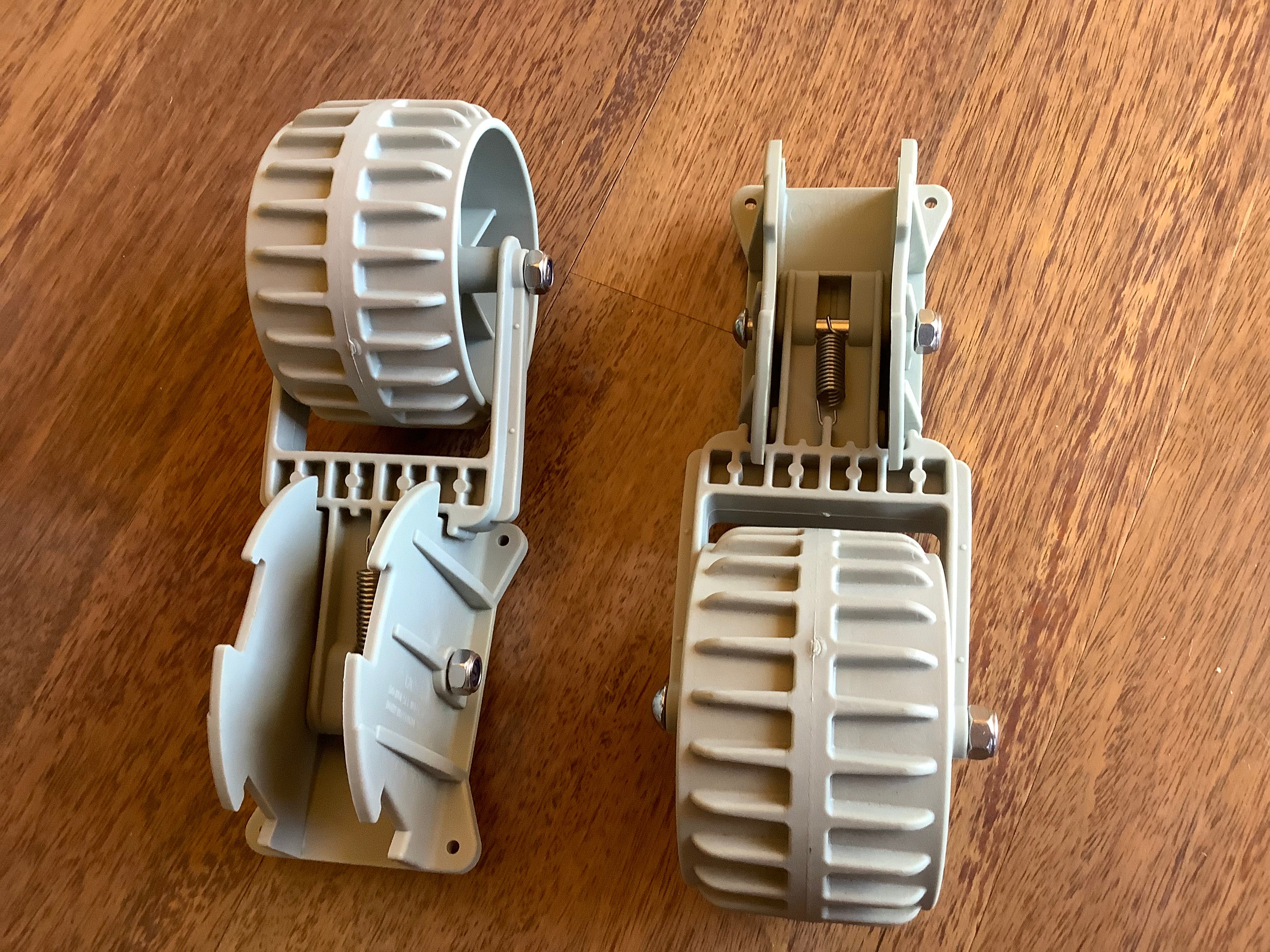 1 pair of dinghy dolly wheels. Ideal for your Nautilus inflatable or RIB.Stainless steel axles. 3 position to allow clearance of water while underway. Light weight construction.