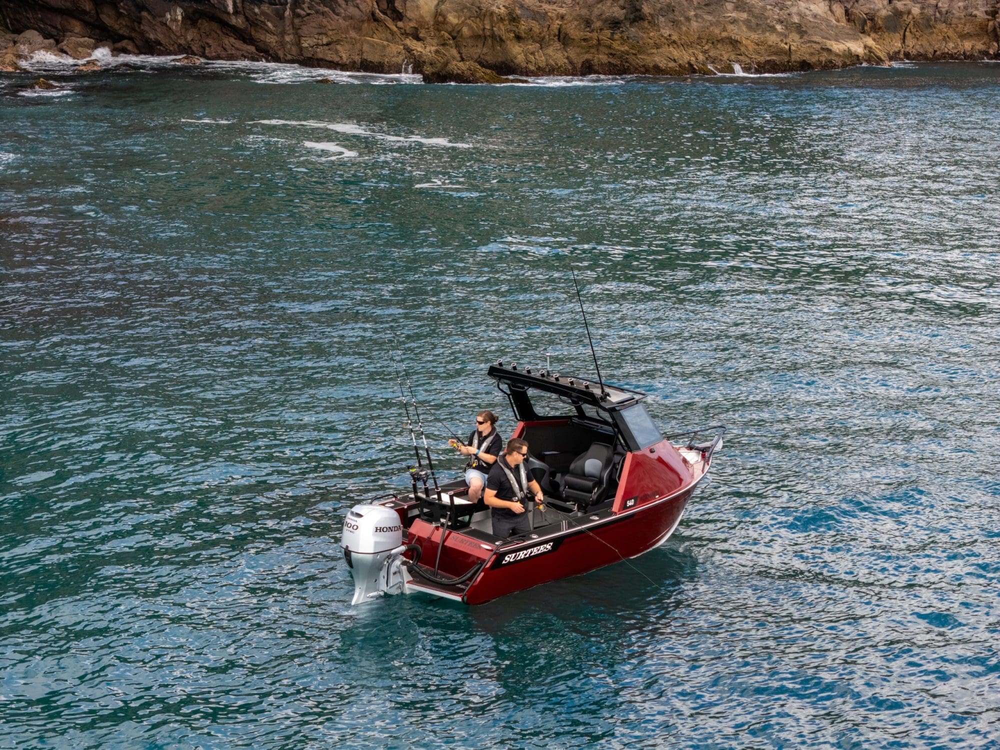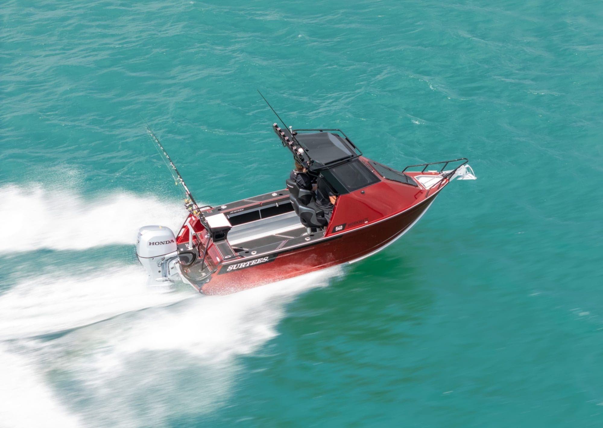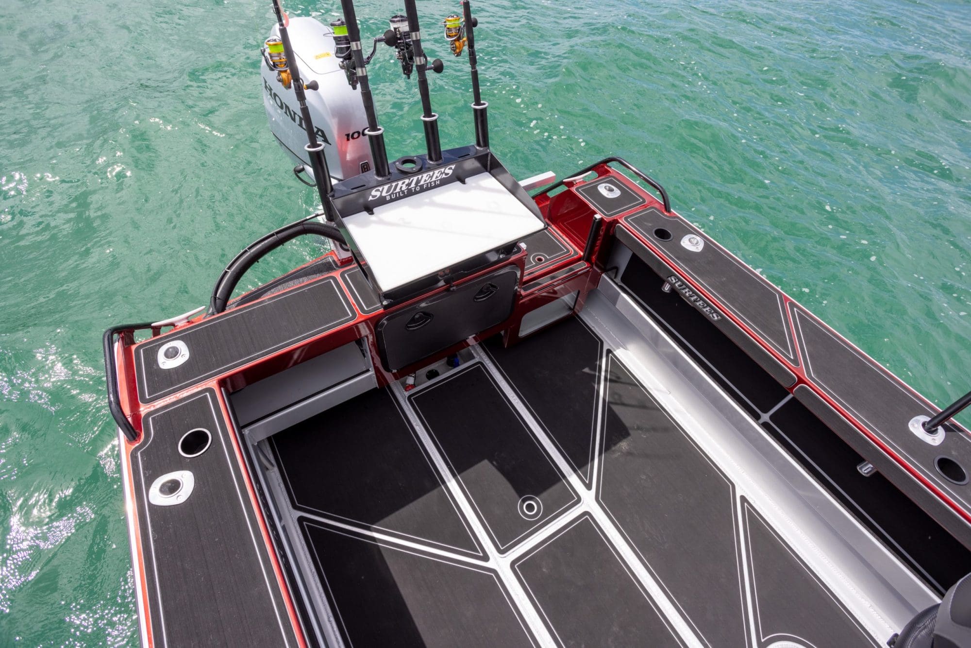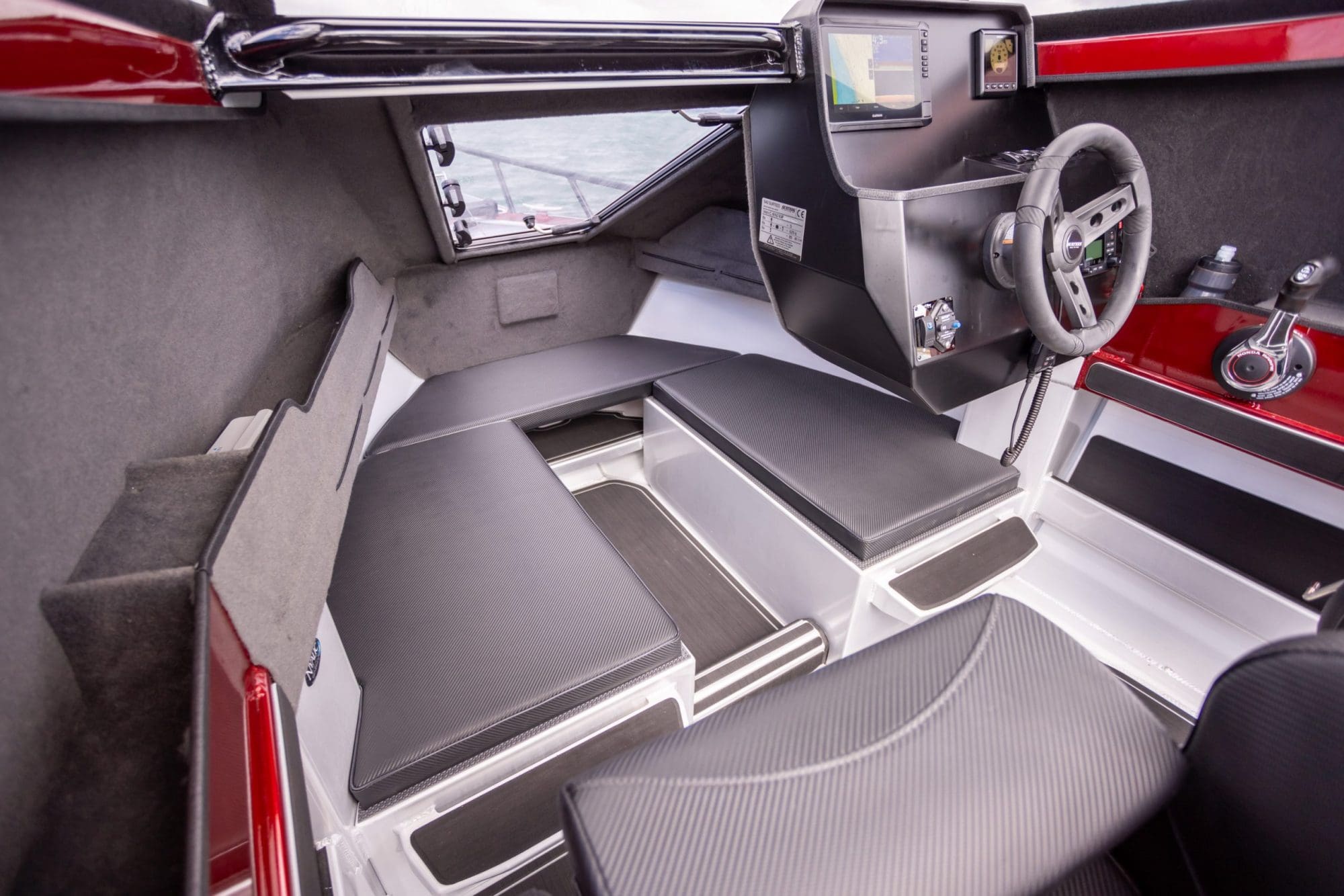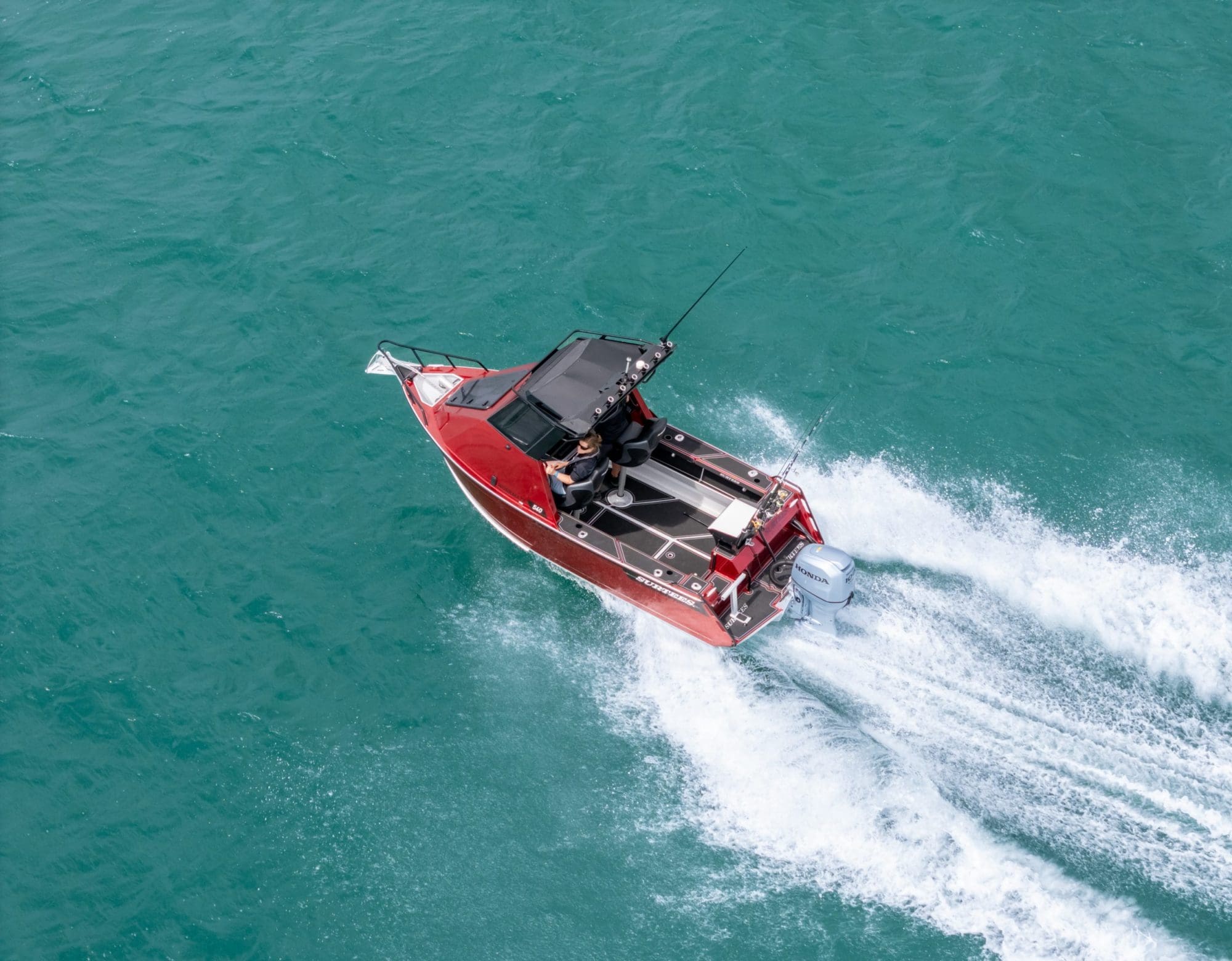 The Surtees hull is renowned for its incredible smooth ride, the deep V and the genius water ballast idea from Neil Surtees, which makes the hull not just stable, but also has the option to lock in the water so when you get into the chop it will give the hull more weight and an even smoother ride in the rough. The newly designed cabin offers incredible protection, a comfortable helm station with practical features as well as a large glass windscreen, a big front hatch and a practical roof – perfect for gear and rod storage