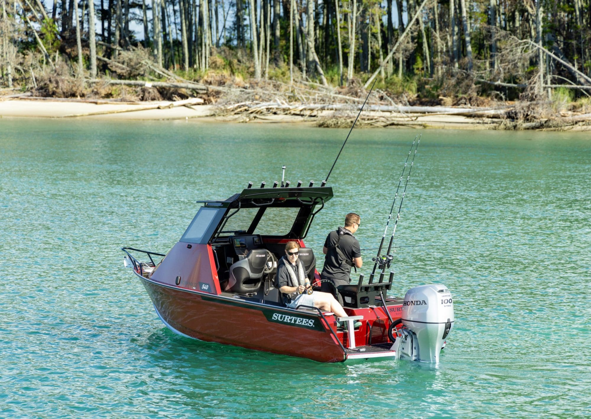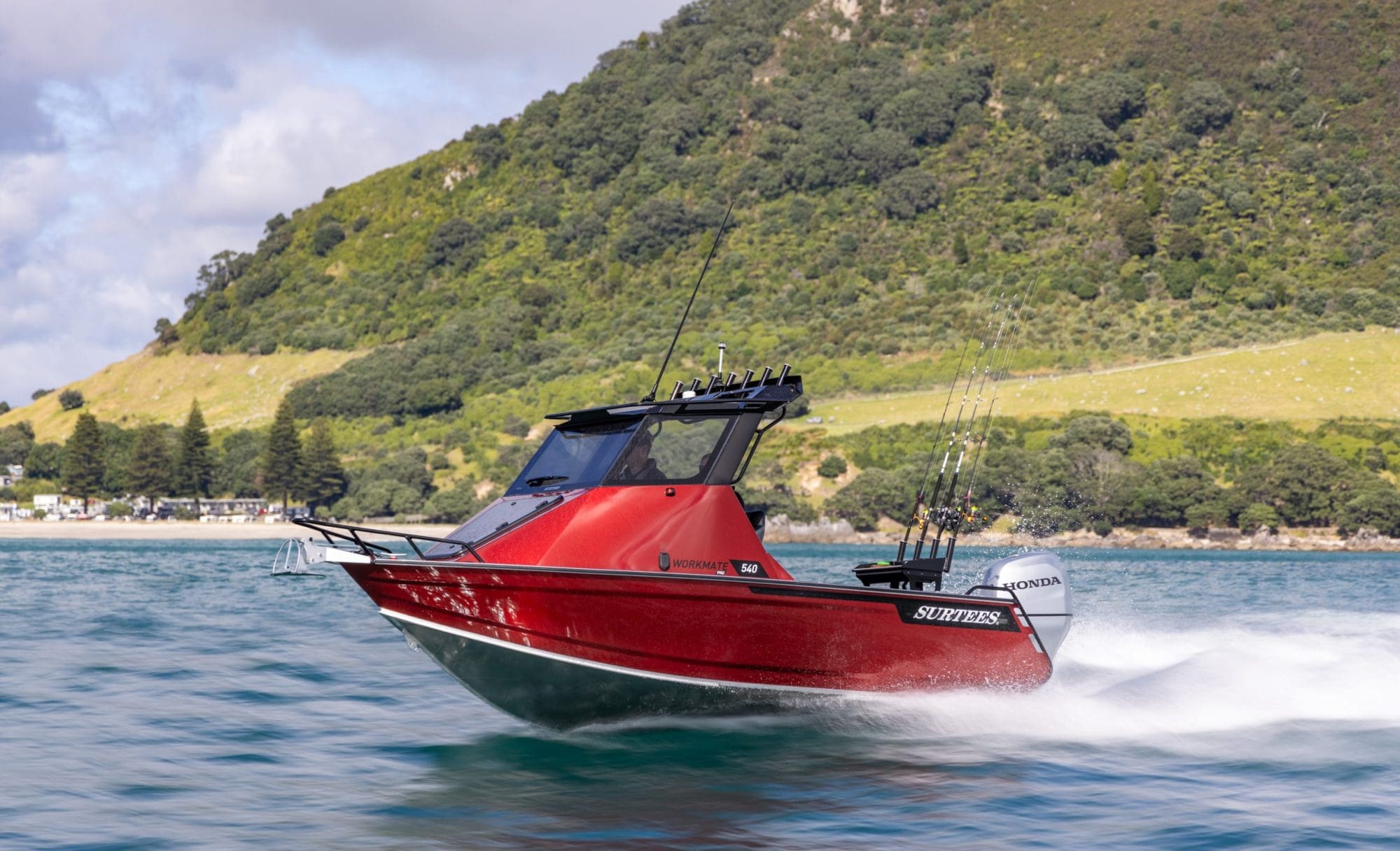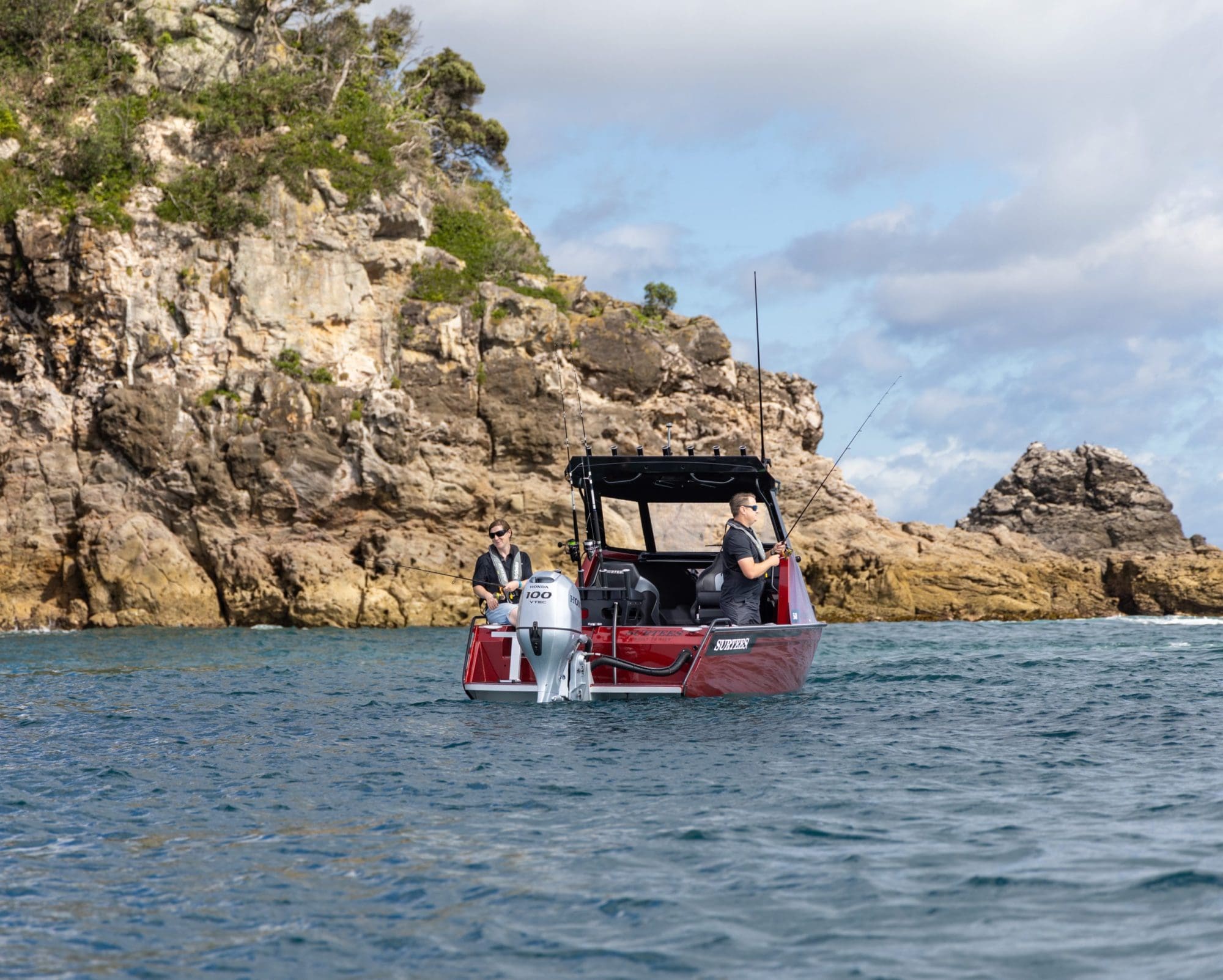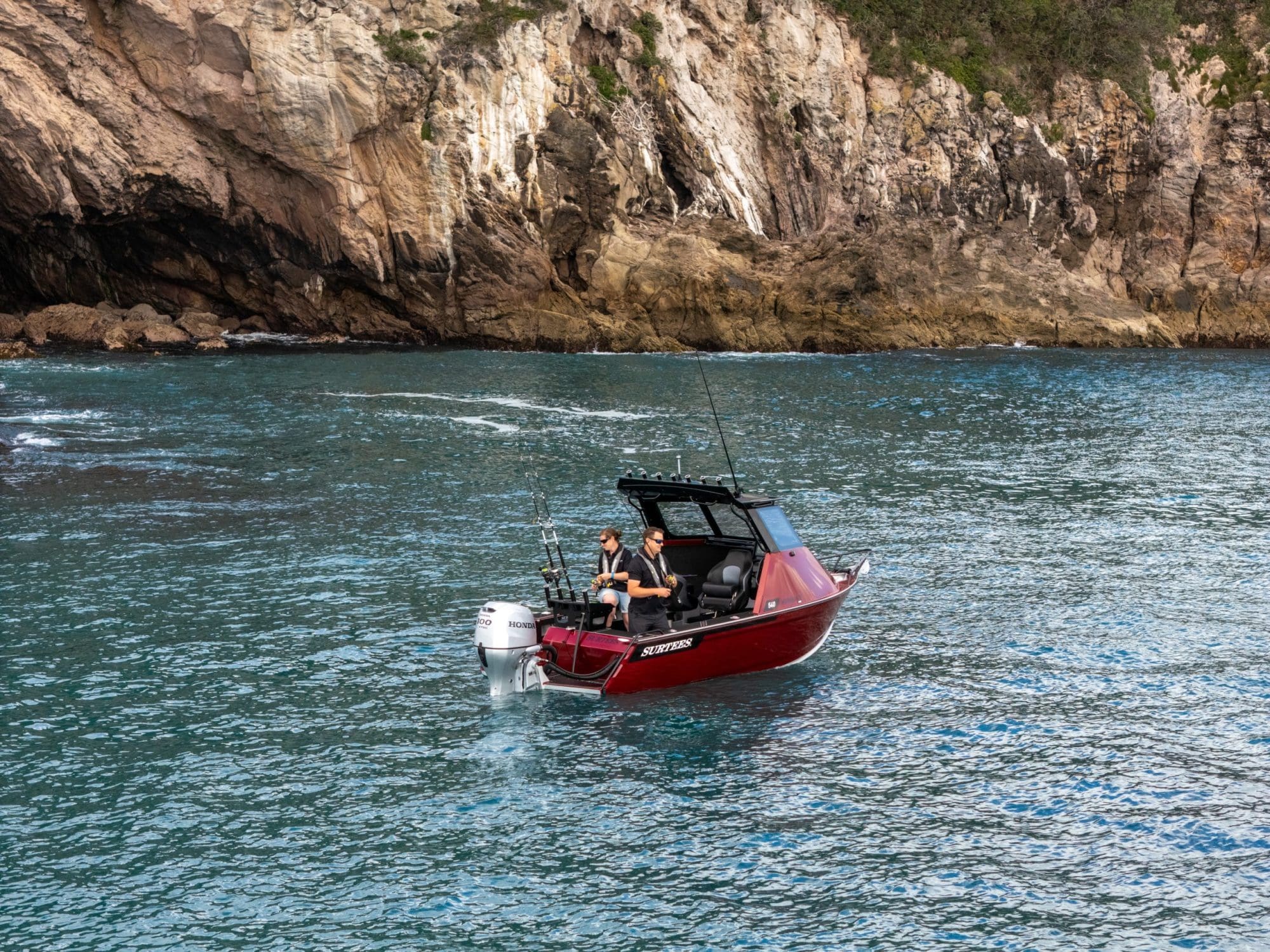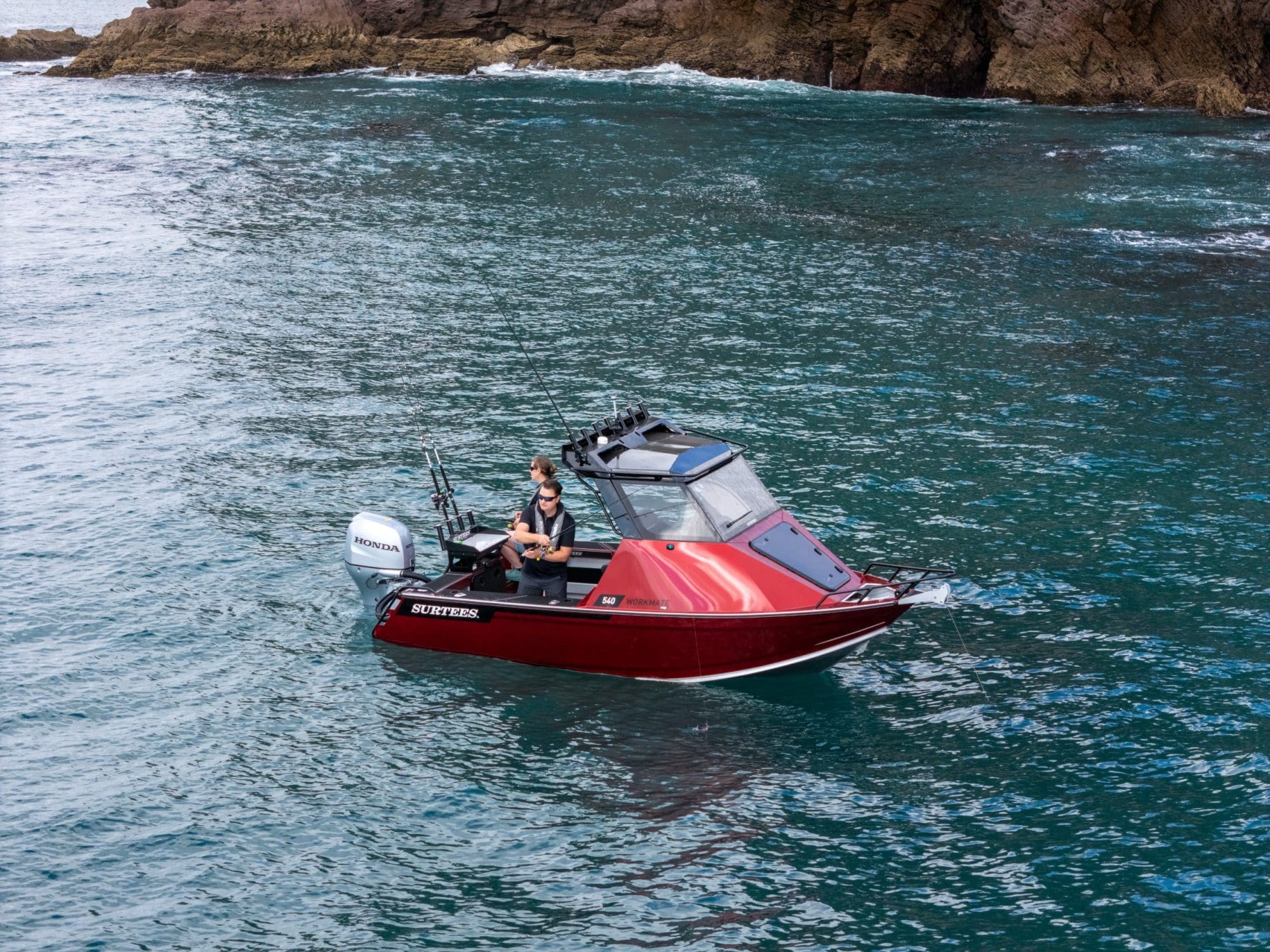 The Surtees hull is renowned for its incredible smooth ride, the deep V and the genius water ballast idea from Neil Surtees, which makes the hull not just stable, but also has the option to lock in the water so when you get into the chop it will give the hull more weight and an even smoother ride in the rough. The newly designed cabin offers incredible protection, a comfortable helm station with practical features as well as a large glass windscreen, a big front hatch and a practical roof – perfect for gear and rod storage